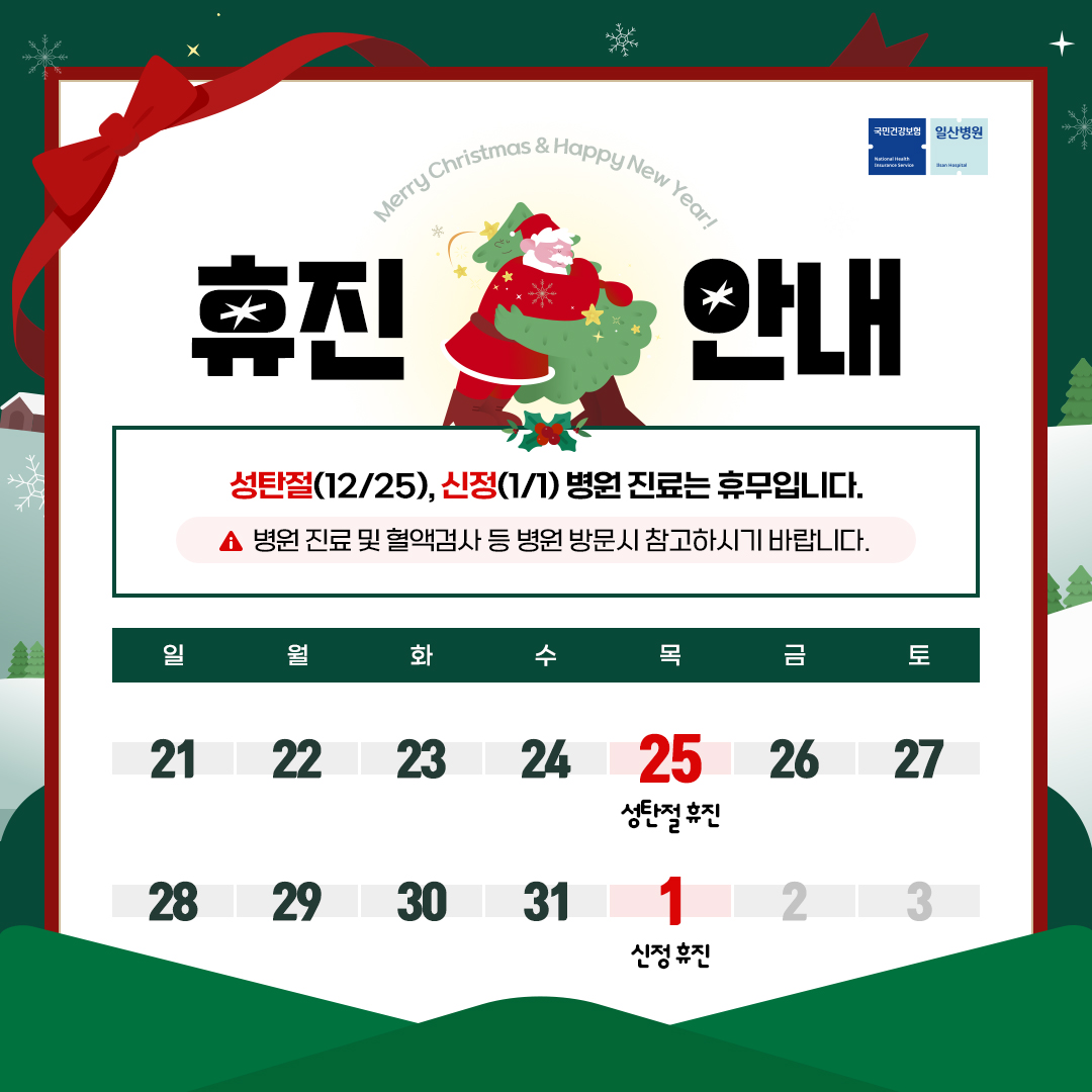 제목성탄절(12/25), 신정(1/1) 휴진안내