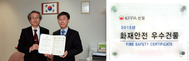 화재안전 우수건물 인정제도는 특수건물 중 최근 10년간 화재 이력이 없고 안전경영 의지가 높으며, 소방시설 관리상태가 우수한 건물을 선정해 인정서 수여 및 건물에 인정패를 부착하는 제도이다. 이 제도는 2011년 6월부터 시행되었으며, 현재까지 전국 148개의 사업장만이 우수건물로 선정된 바 있다. 우리 병원은 이번 우수건물 인정으로 한국화재보험협회(KFPA) 의 화재안전 및 보험료경감을 위한 기술지원 등의 혜택을 받게 된다.