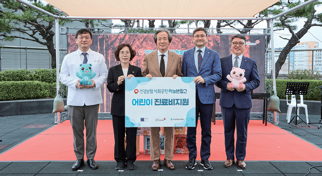 9월 12일, 일산병원 4층 재활공원에서는 ‘하늘반창고 진료비 지원사업’ 기부금 전달식이 개최됐다. 올해로 15년째를 맞은 ‘하늘반창고 진료비 지원사업’은 일산병원과 전국 협력 병의원, 전국 184개 공단 봉사단과 결연한 아동보호시설과 연계해 추진된다. 공단 임직원들이 자발적으로 모금한 사회공헌기금으로 경제적으로 어려워 치료를 받지 못하는 만 18세 이하 아동과 청소년들에게 치료비, 수술비, 검사비 등 진료비를 지원하는 사업이다.