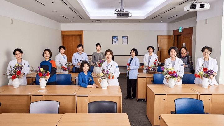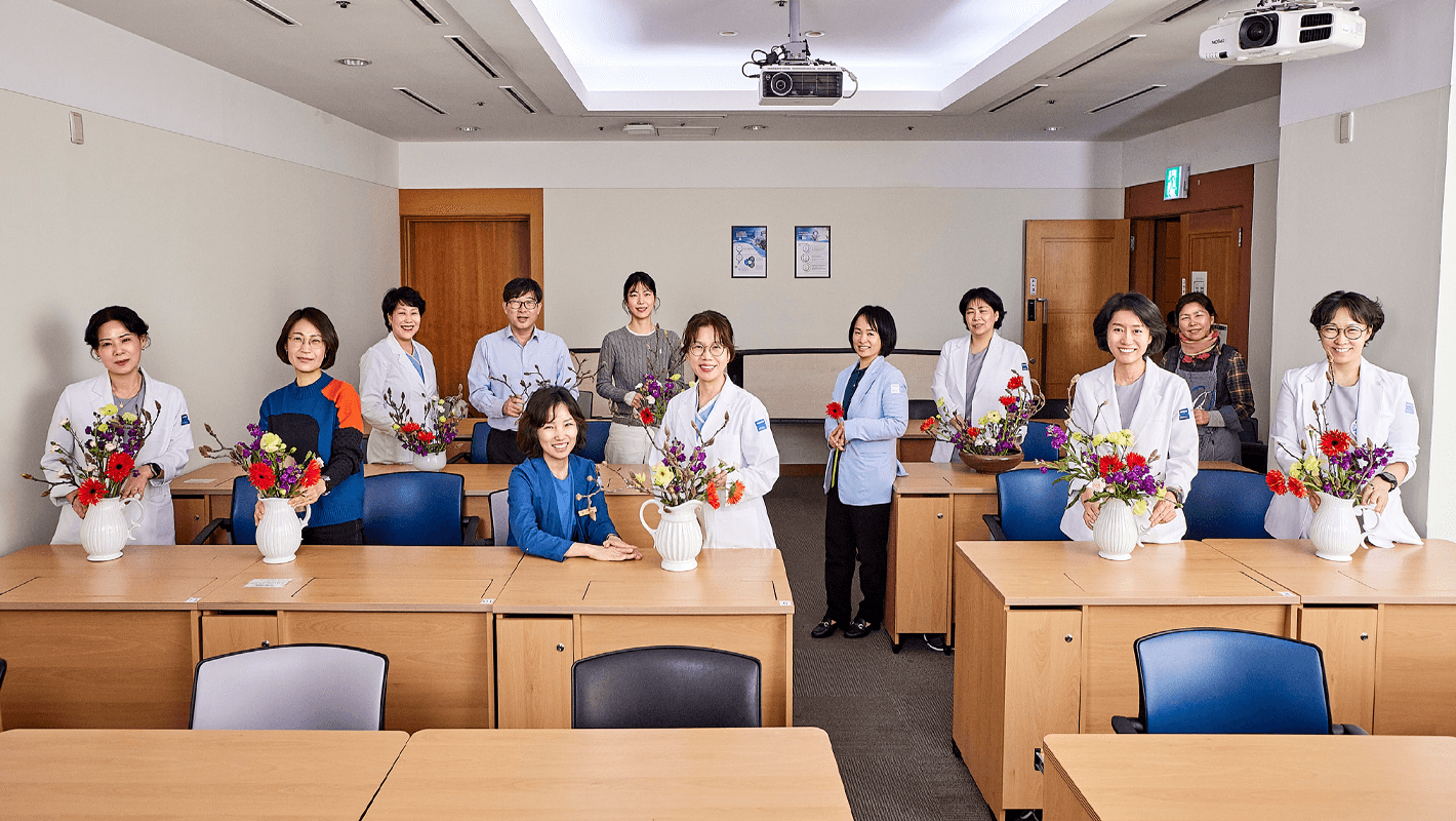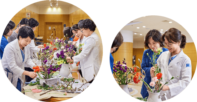 화선회는 단순한 취미 모임을 넘어 직원들이 소통하고 재충전하는 공간입니다. 각기 다른 색과 형태를 가진 꽃을 가까이에서 마주하는 경험은 자연이 주는 위로를 느끼게 하고, 회원들 간의 교류는 병원 생활에 여유와 활력을 더해줍니다.