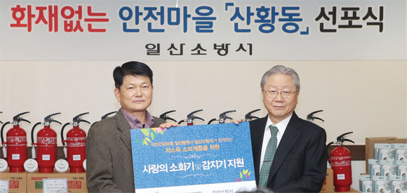 우리 병원은 일산소방서와 손을 잡고 관내 재난 취약계층의 안전한 생활을 위한 화재안전 물품지원 활동을 펼쳤다. 물품 전달식은 12월 10일 일산동구 산황동 마을회관에서 열린 ‘화재없는 안전마을’ 선포식 행사에서 진행되었으며, 김광문 병원장과 서은석 일산소방서장을 비롯해 지역 내 유관기관 인사 등 100여 명이 참석하여 지역주민의 소중한 생명과 재산을 지켜줄 소화기 270대와 단독 경보형 감지기 300대를 전달했다. 이는 산황동 마을 150가구와 지역 내 주거형 비닐하우스 등 재난 취약지구에 전달돼 안전한 생활에 도움을 줄 예정이다.